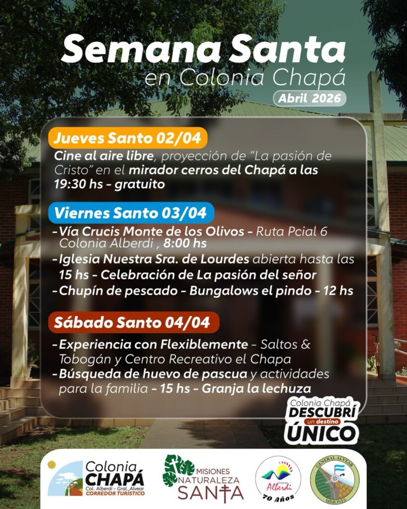 En ese sentido, el coordinador indica que Colonia Chapá invita a vivir una Semana Santa diferente, en contacto con la fe, la naturaleza y la familia. «En Colonia Chapá te espera una experiencia única», asegura.