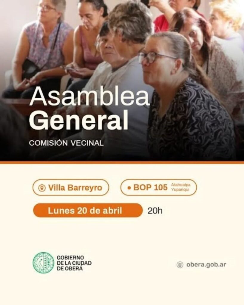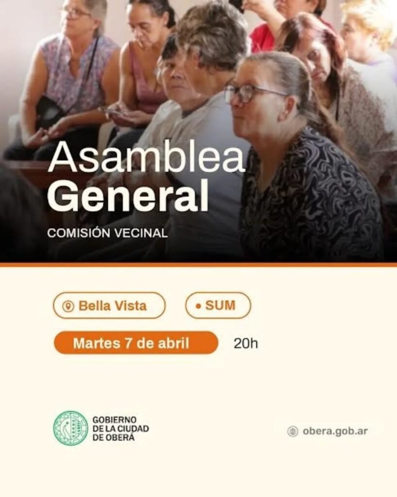 El Gobierno de la Ciudad de Oberá invita a los vecinos de los barrios Kindgren, Norte, Ecológico y Hultgren a participar de las asambleas informativas sobre las próximas elecciones de autoridades de las Comisiones Vecinales.