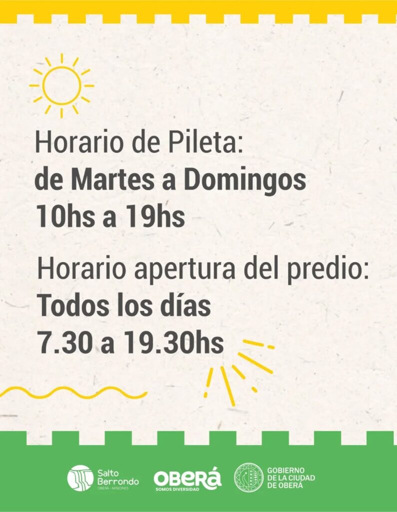 La directora de Cultura, Turismo y Recreación de la Municipalidad de Oberá, Cristina Stevenson, confirmó que “la pileta del complejo turístico Salto de Berrondo abrió sus puertas después de un año de la última temporada que fue
