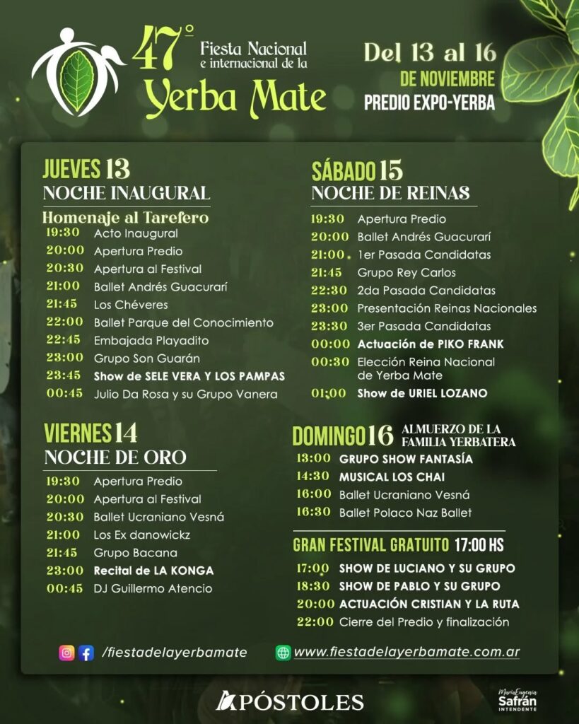 Cronograma de la 47ª Fiesta Nacional e Internacional de la Yerba Mate